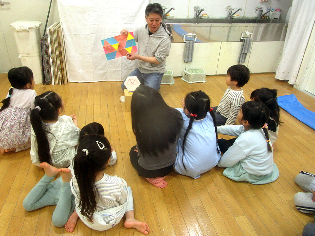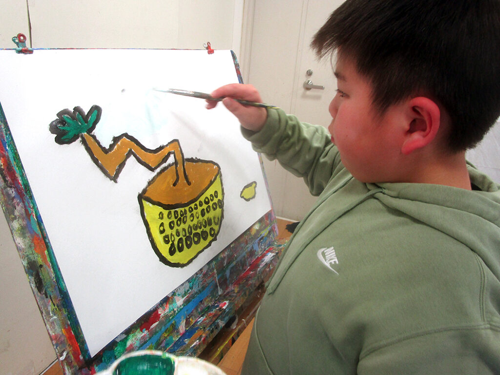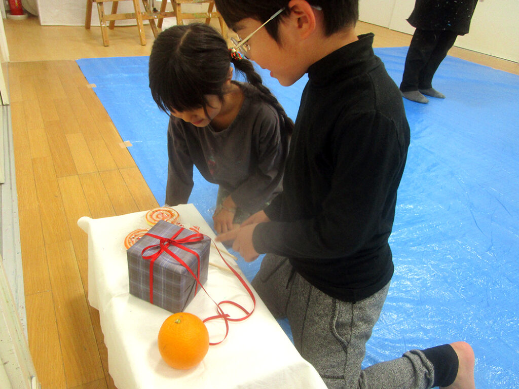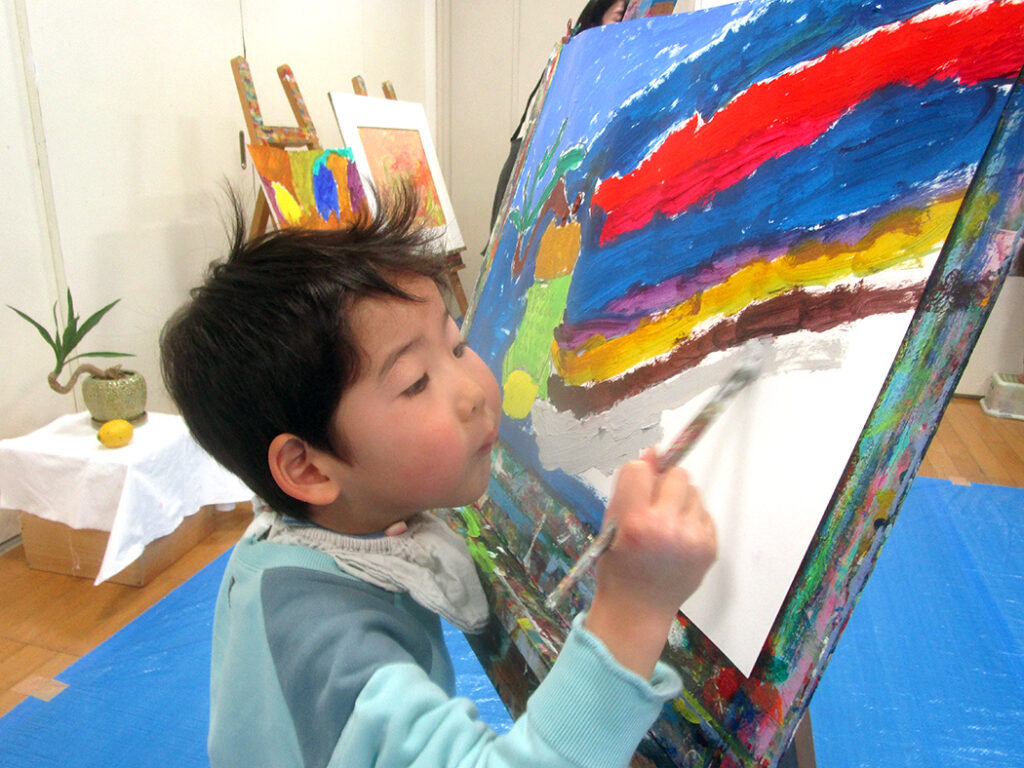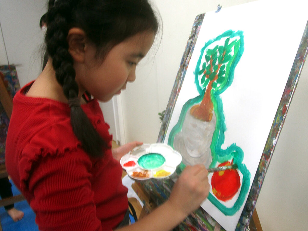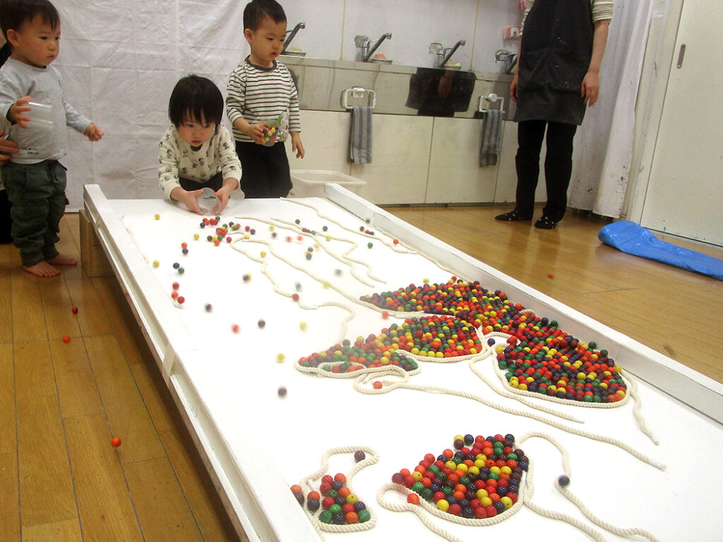 まずは体いっぱいロープ遊びで、線の世界を感じ取ったら絵画の開始です。今回はキャンディーや植物など線を感じられるモチーフです。画用紙に木炭で下描きをしてアクリル絵具で着彩。子ども達の人数分の答えが生まれます。今回も魅力あふれる世界がたくさん生まれました⭐︎