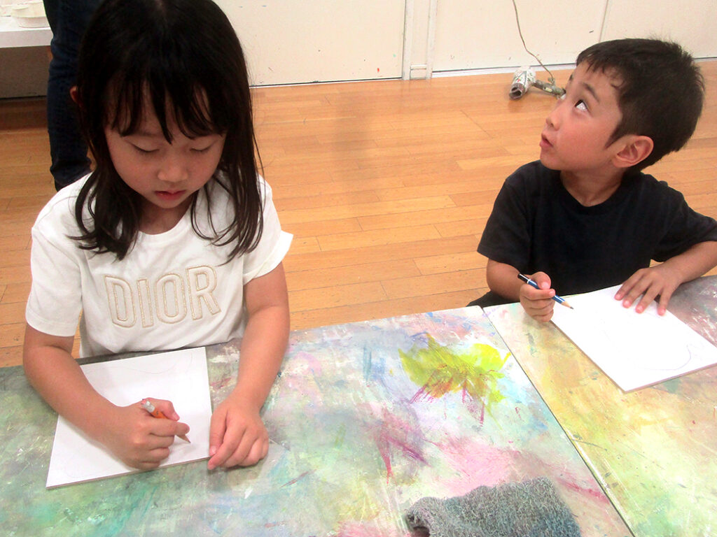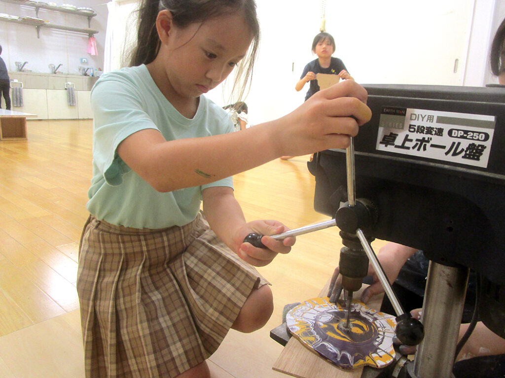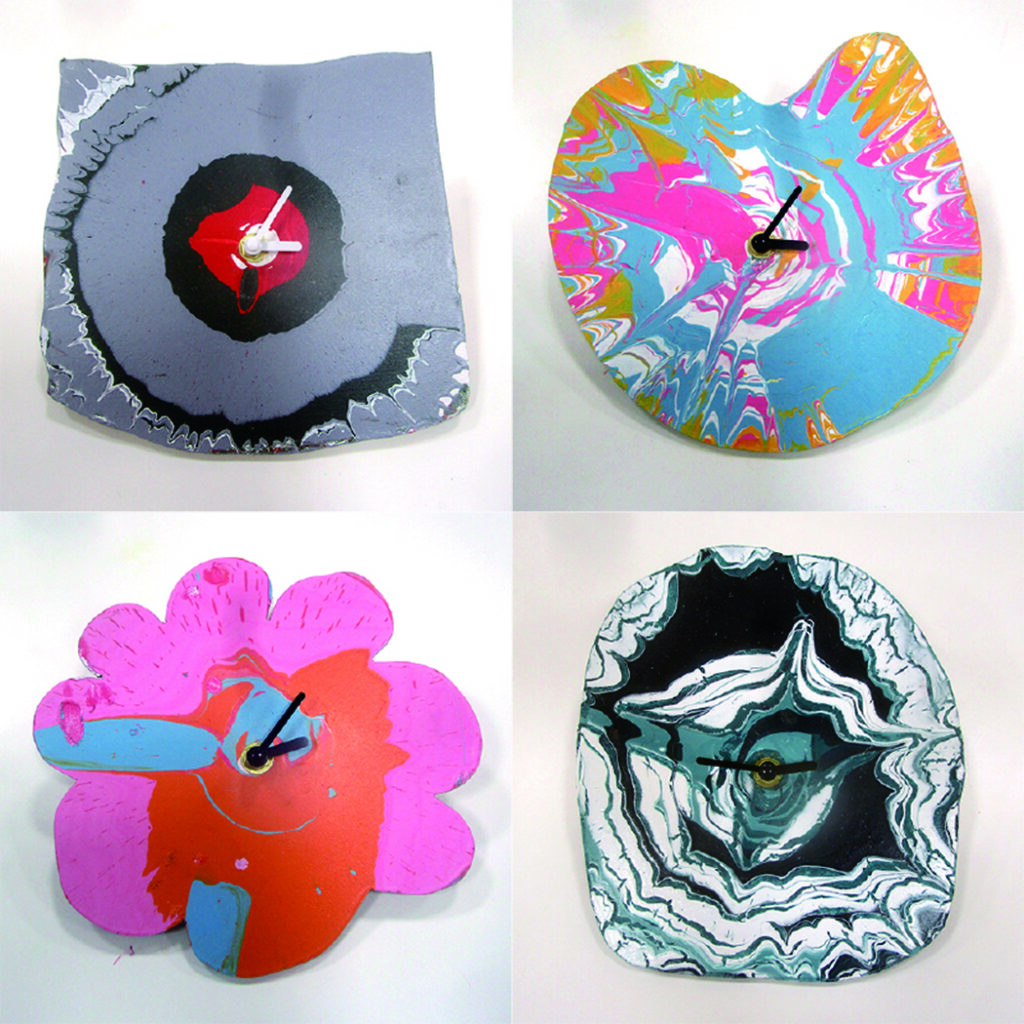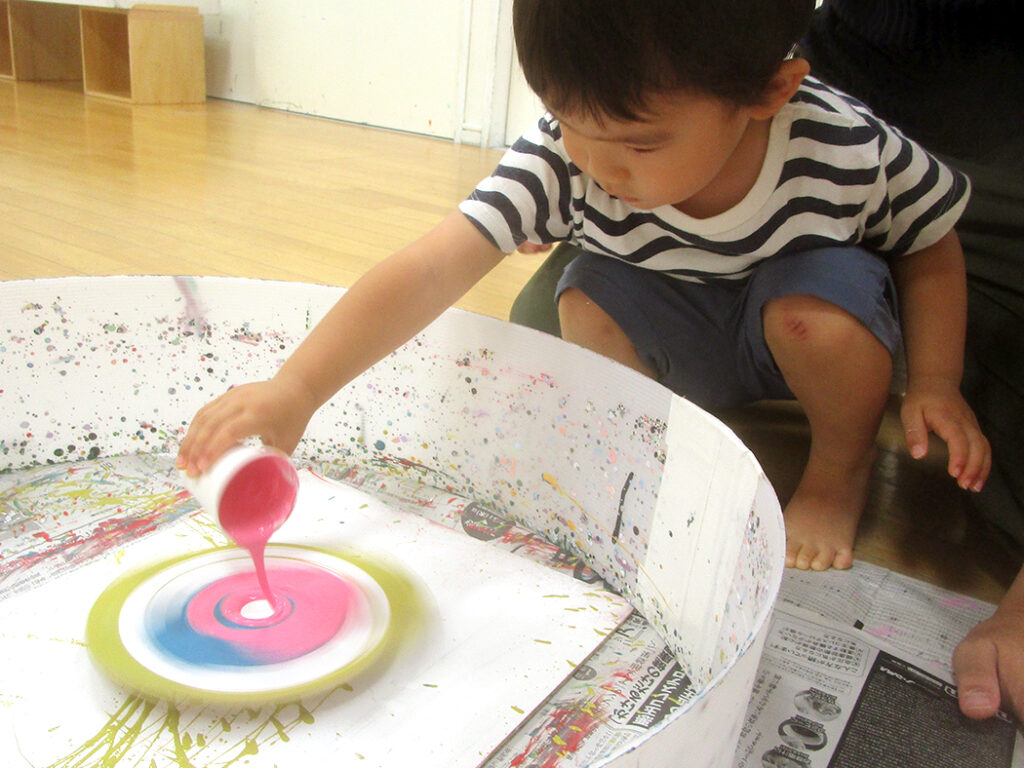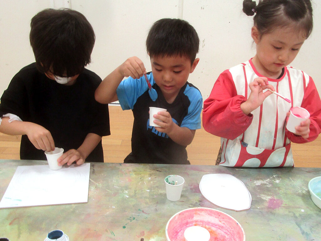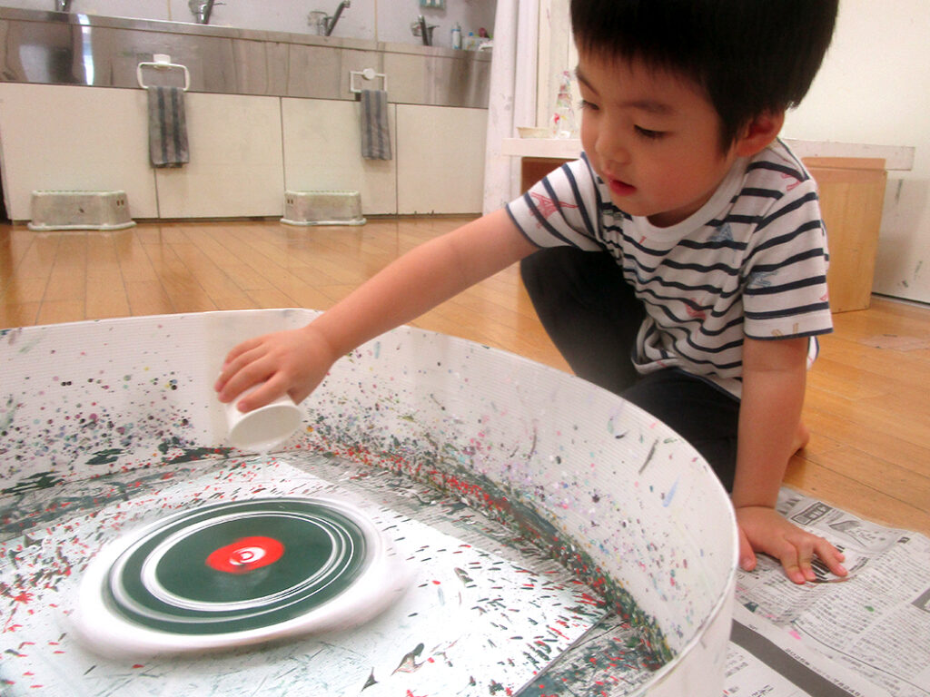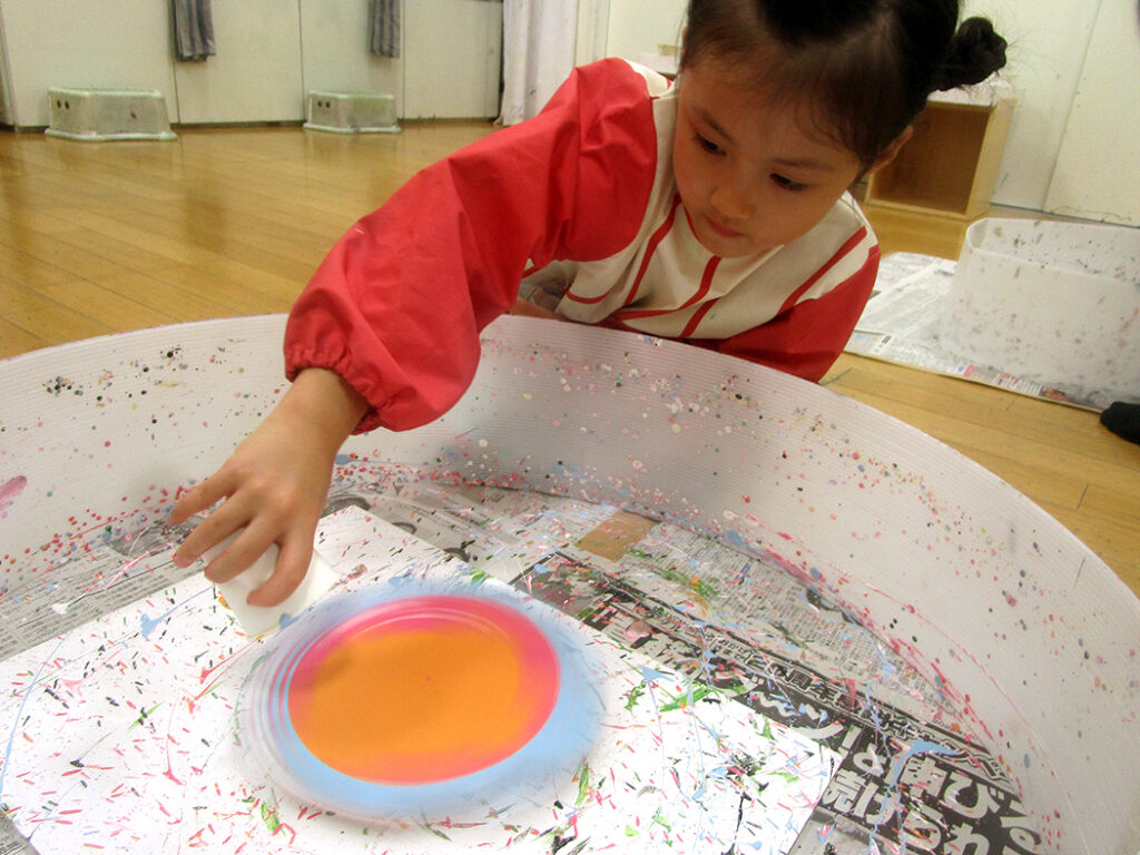 今年の夏のイベントは時計づくりです⭐︎お好み形に板をカットして、お好みの色をつくって、回転させた板の上に絵具を垂らしながらの表現です。遠心力から生まれる色面は驚きがいっぱい⭐︎いろいろな発見がつまった活動からは、偶然性豊かな世界がたくさん生まれました⭐︎