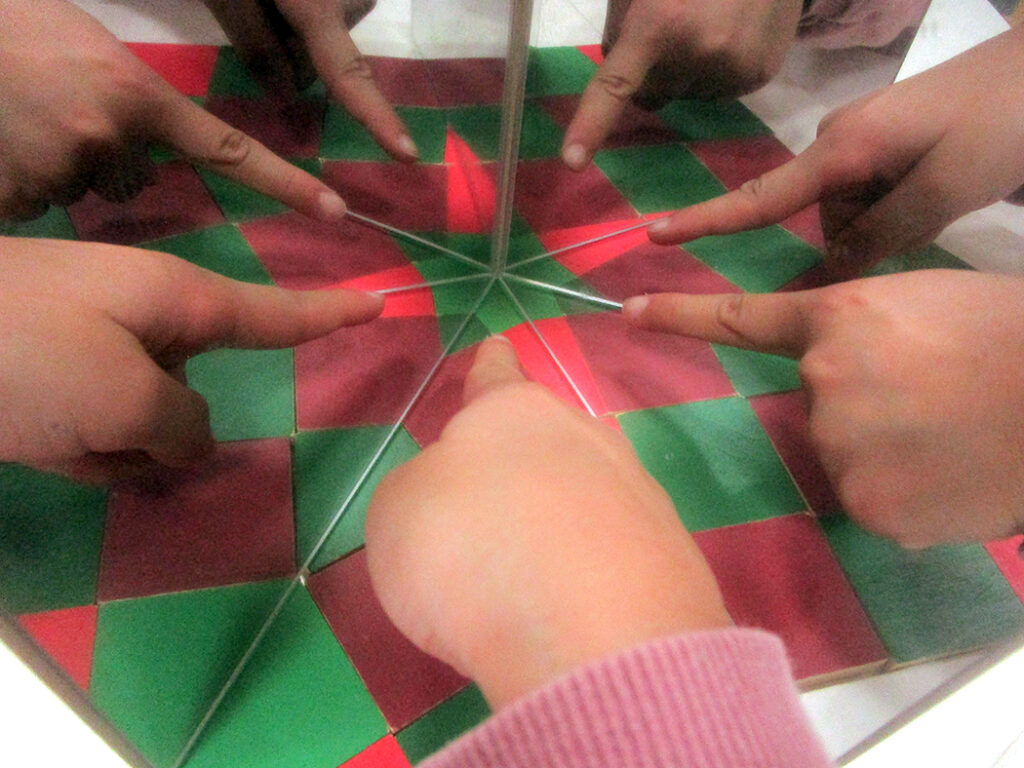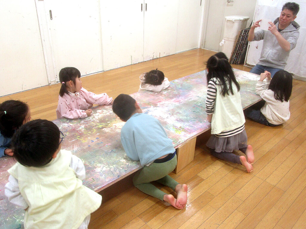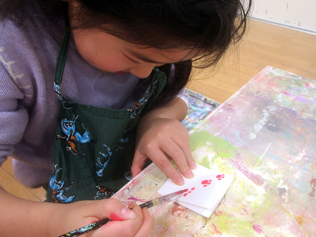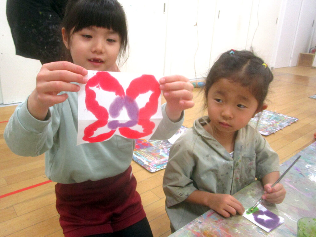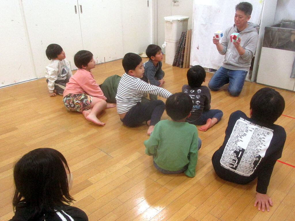 今回は正方形で色面空間づくりです。まずは偶然性いっぱいに模様をつくり、驚きと発見が生まれる時間です。そして完成した正方形を壁面に構成して幻想的な光の空間に⭐︎最後は子ども達がサンタクロースになって、笑顔いっぱい驚きいっぱいな時間になりました♪