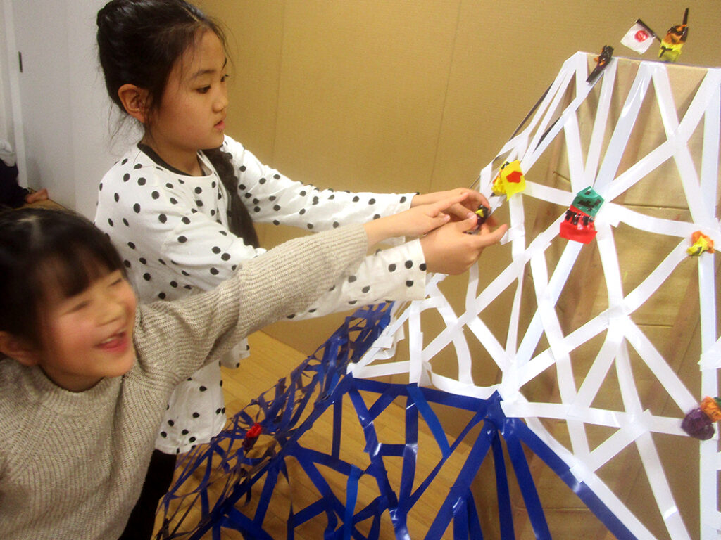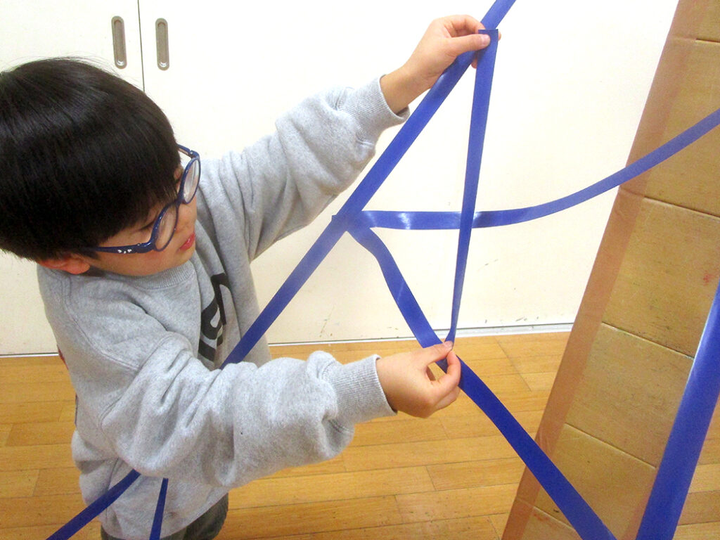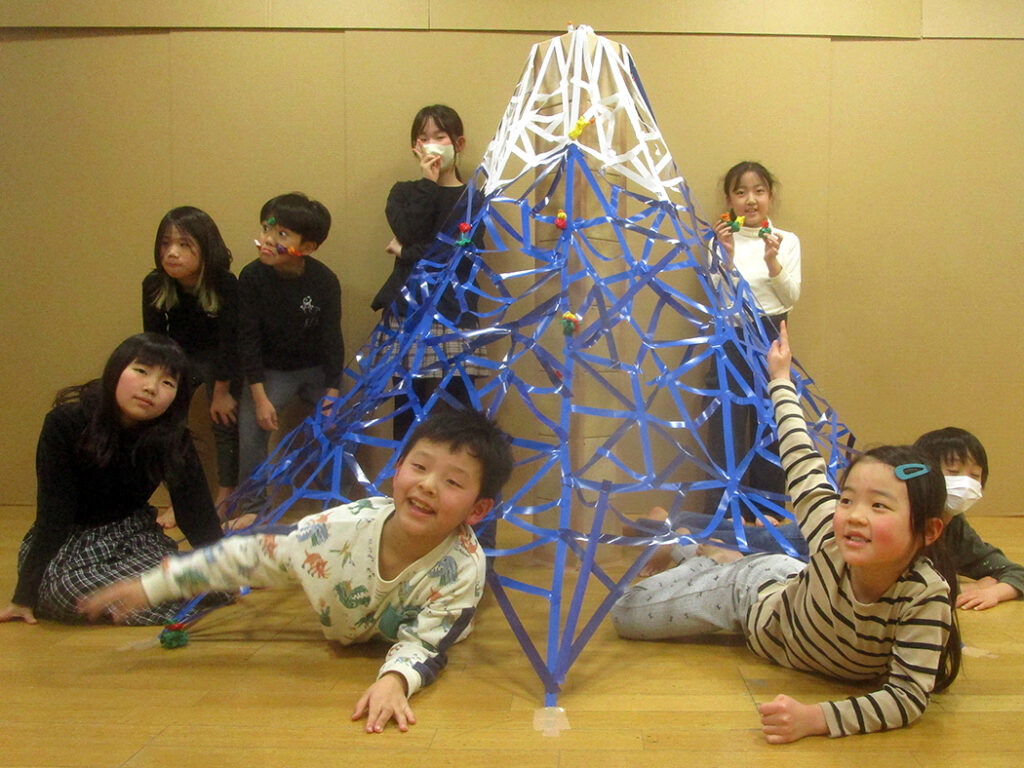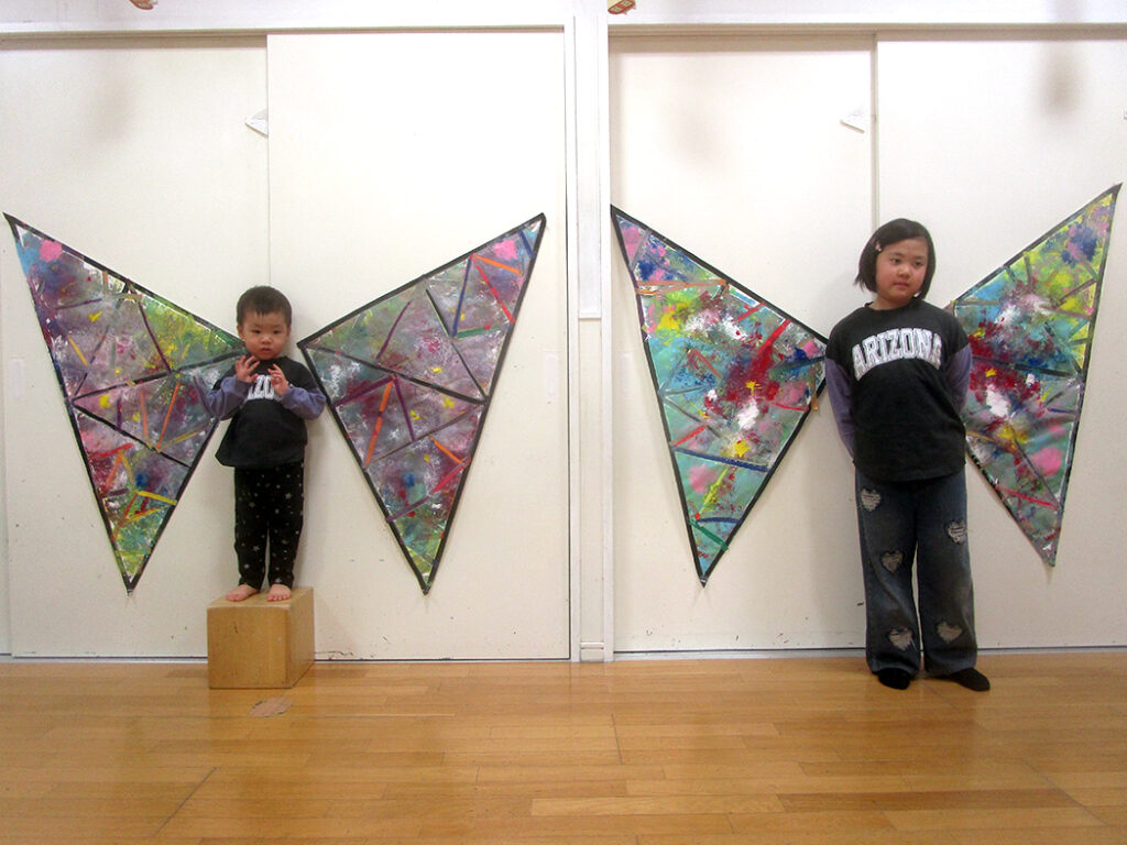 2026年のアトリエも始まりました!今年もよろしくお願いいたします。新年最初の活動は三角形。ビニールテープを使用して大きな富士山、大きな蝶々づくりにチャレンジです。ダイナミックな世界がたくさん生まれました☆
