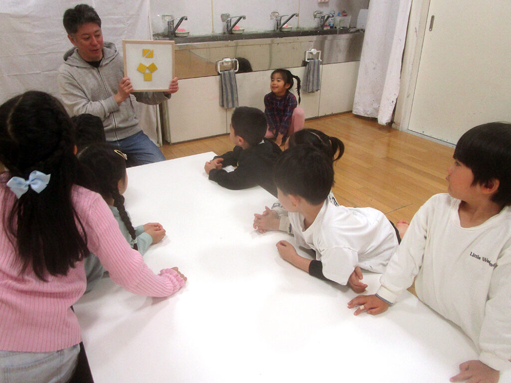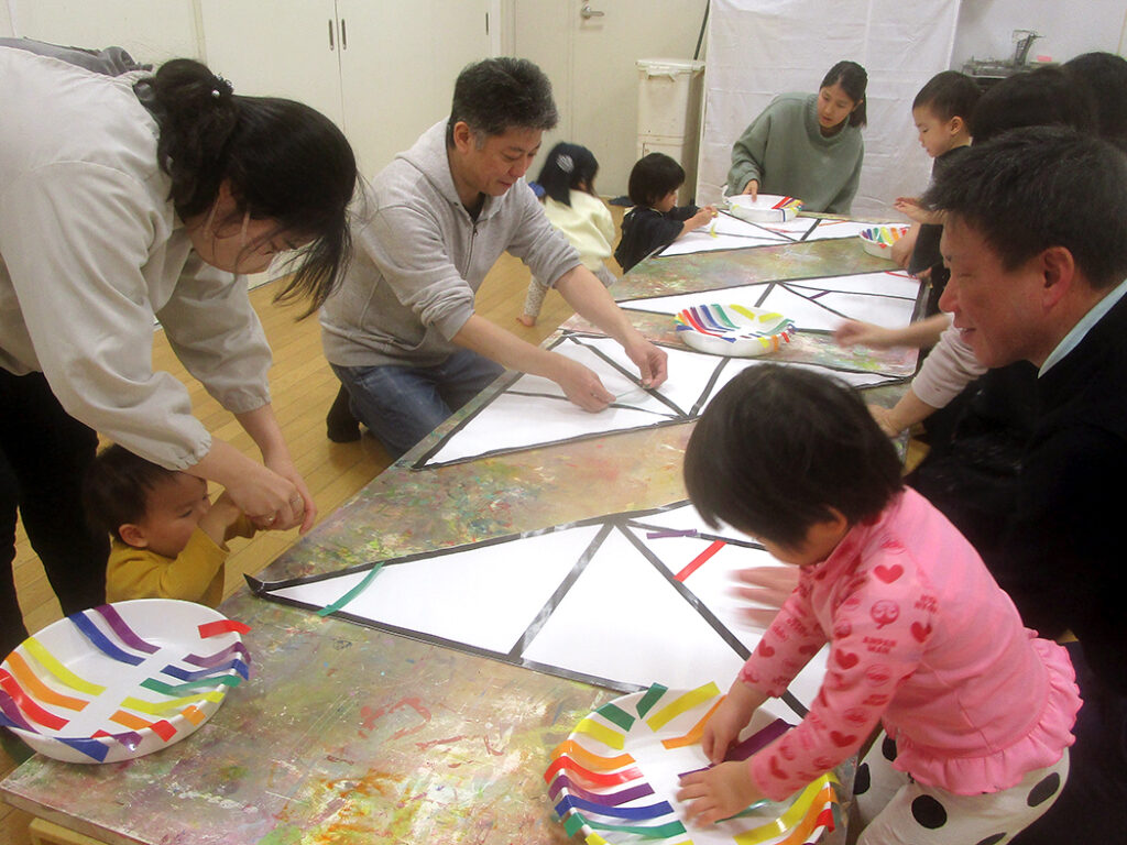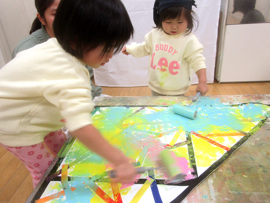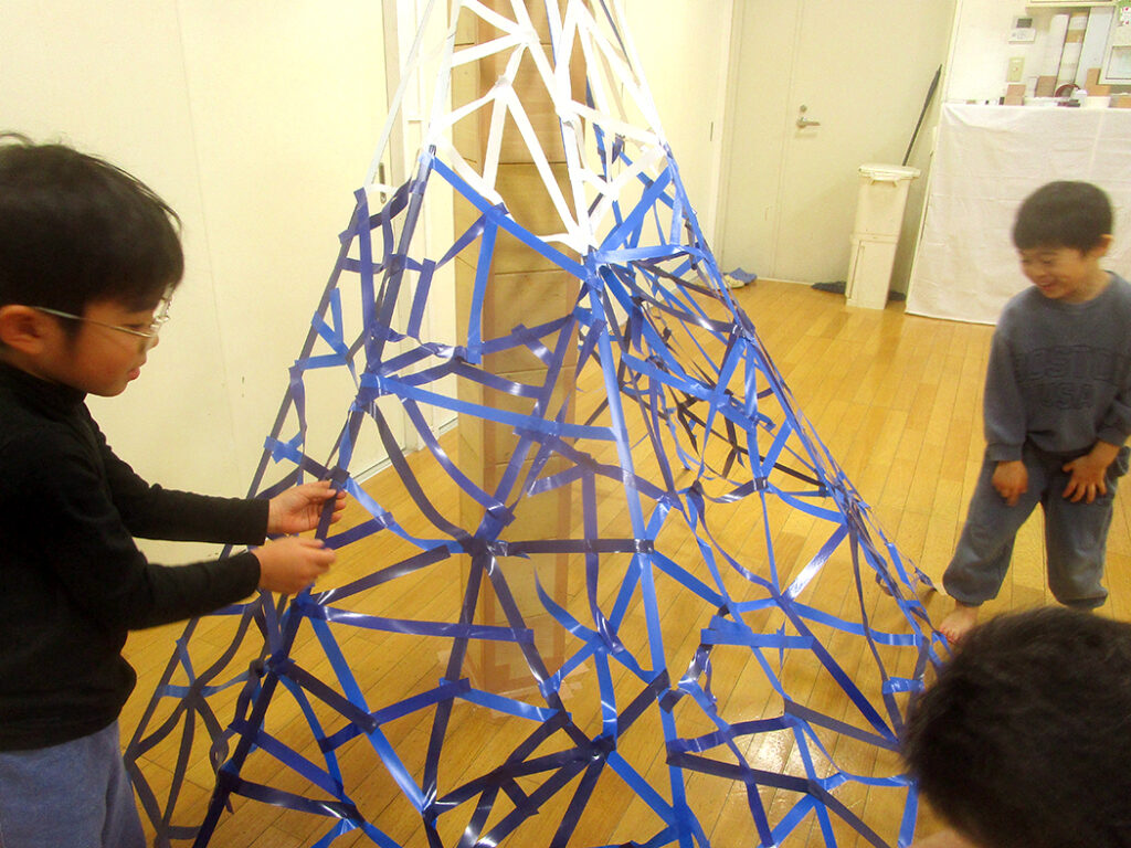 2026年のアトリエも始まりました!今年もよろしくお願いいたします。新年最初の活動は三角形。ビニールテープを使用して大きな富士山、大きな蝶々づくりにチャレンジです。ダイナミックな世界がたくさん生まれました☆